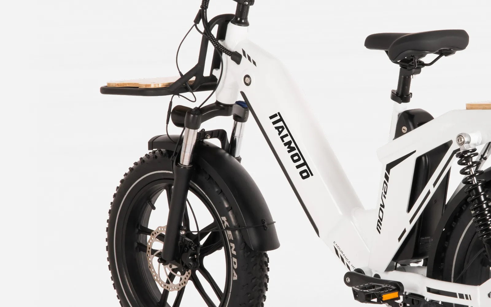 Grazie ai freni a disco idraulici Tektro Ø160mm, Movia garantisce frenate pronte e precise in ogni situazione.